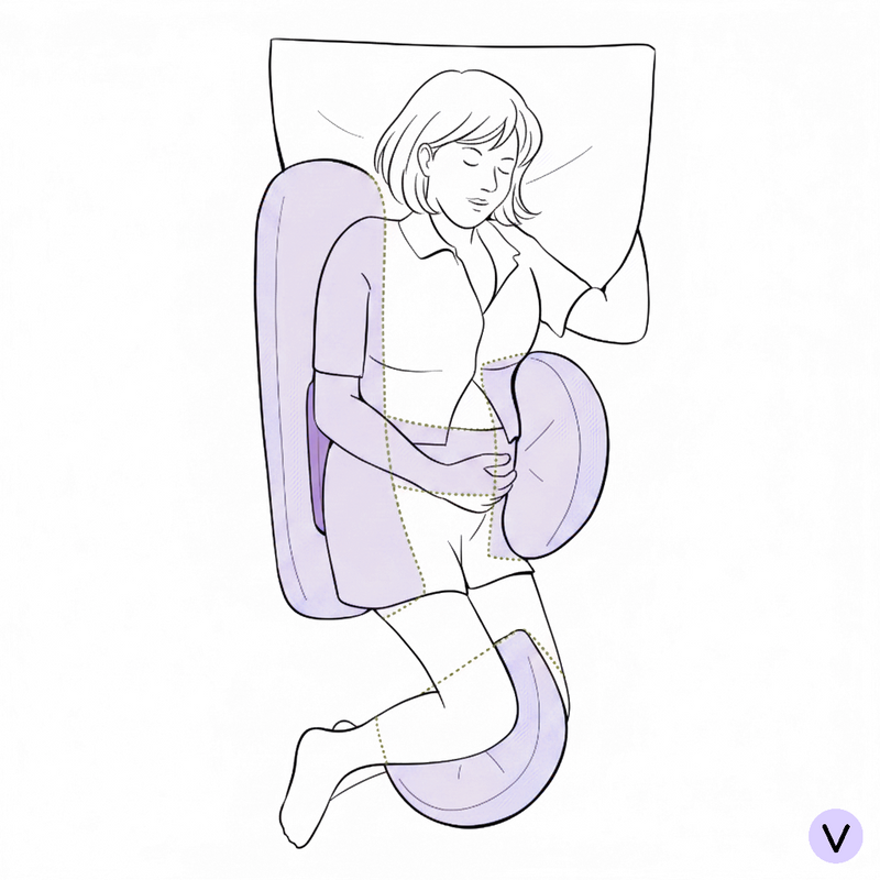 כן. ניתן להתאים את מיקום הכריות ואת המרחק ביניהן לפי גודל הבטן והעדפה אישית.